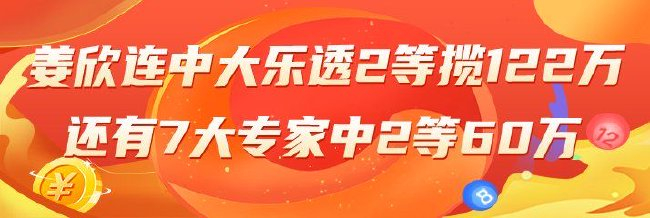 姜欣大乐透:连中!连续两期独胆正确,选2中2,智能推荐,知荣中60万累擒3244万;蒋春阳、选5中4,[查看专家推荐]